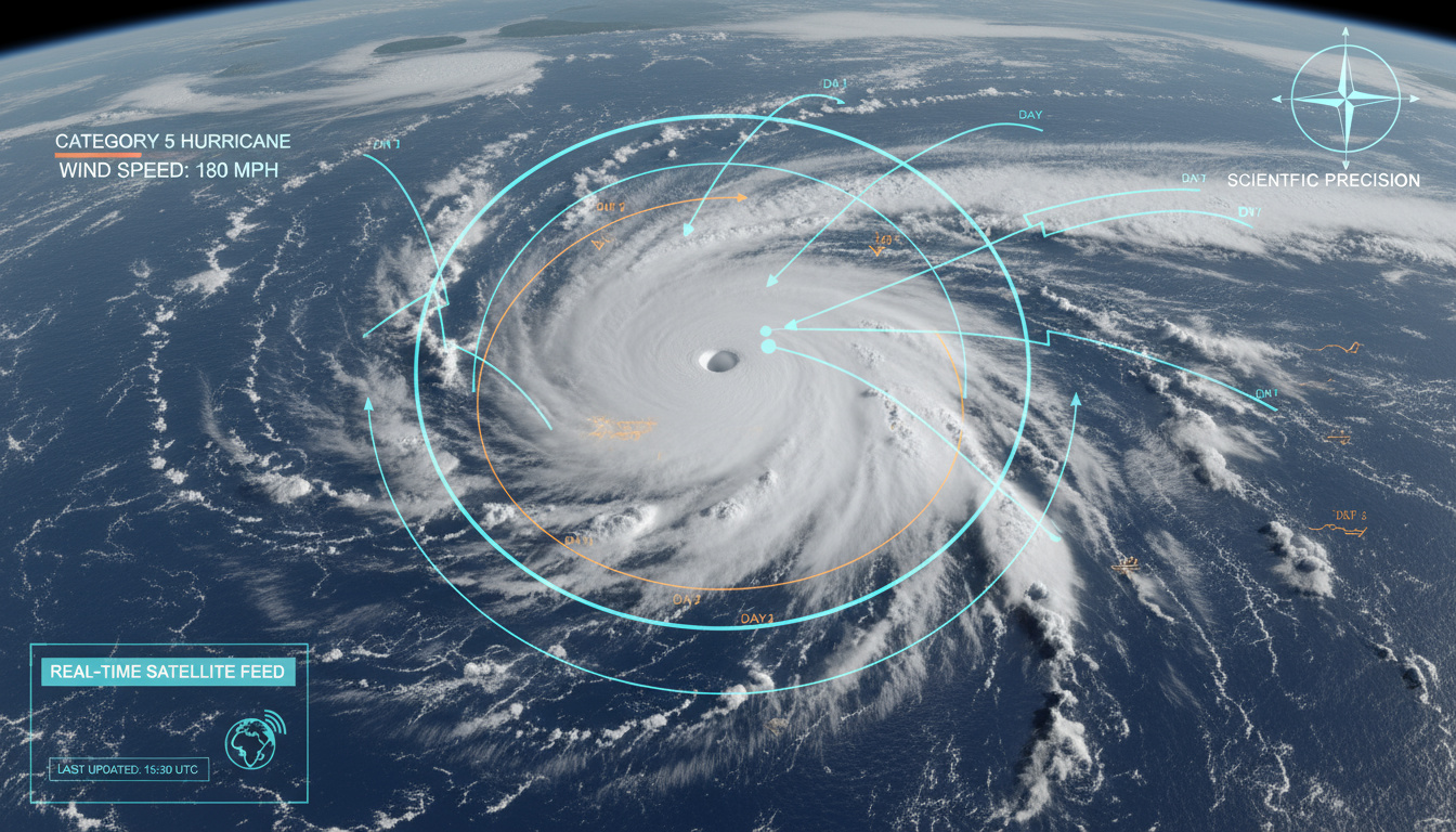 Orkanens bana övervakas via officiella ”Hurricane tracker”-verktyg från bl.a. NOAA och ArcGIS som visar realtidskartor och prognoser. - Vilka källor har bekräftat orkanens bana?