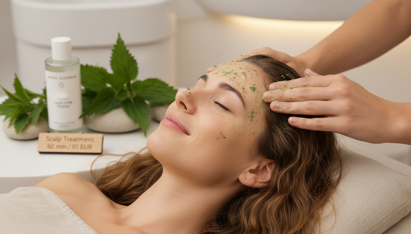 - Scalp Treatment Nettle innehåller nässla och tussilago och appliceras i hårbotten utan att sköljas ur. – Maria Åkerbergs officiella produktsida